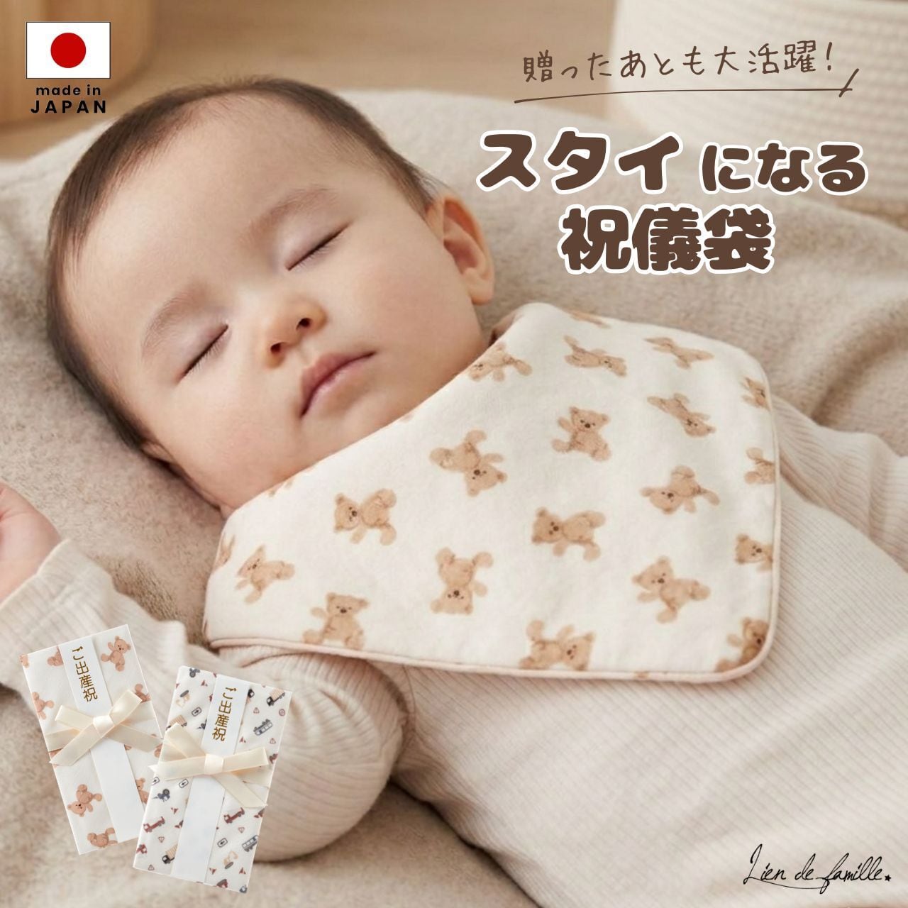 【出産祝い のし袋】lien de famille リヤンドファミーユ スタイ 祝儀袋 テディベア くま|男の子・女の子対応